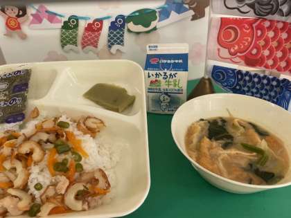 かやくご飯 きざみのり みそ汁 まっ茶ういろう