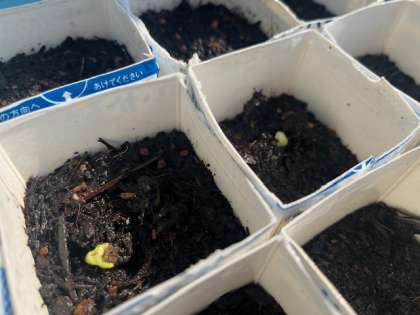 先日植えた『はるかのひまわり』がかわいい芽をだしました!