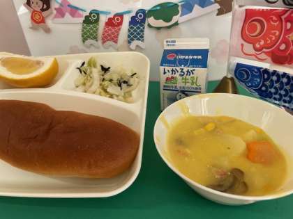鶏肉とコーンのシチュー キャベツのひじきドレッシング かわちばんかん