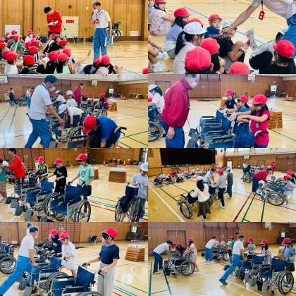 子ども達は、「急に動き出して怖かったから、乗っている人に声をかけてから車椅子を操作をしようと思った。」「ふだんは簡単に越えられる段差でこんなに困るとは思わなかったから、車椅子に乗っている方に必要なサポートがあったらできるよう見守りたい。」と感想を話していました。