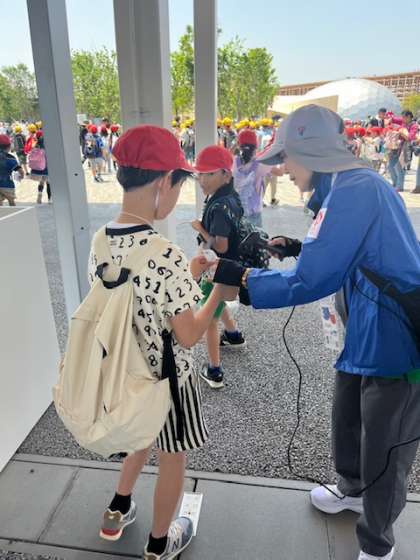 夢洲の駅に着くと、役員の方が付いてくださり、誘導していただきました。