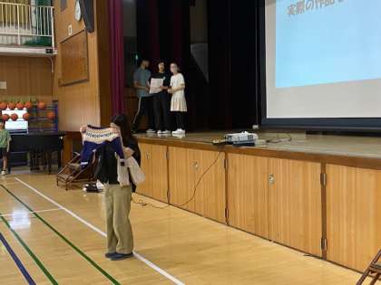 テニスあり、編み物あり、バスケットボールあり、食べることありと、それぞれ見た目では分からない特技を披露。子どもたちも大きな拍手を送っていました(^^)