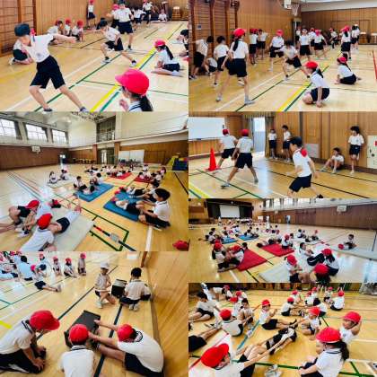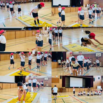 反復横跳び、立ち幅跳び、上体起こし、長座体前屈を行いました。
