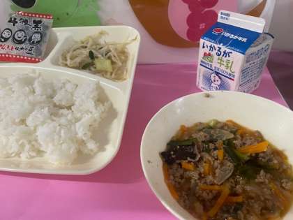 マーボーはるさめ チンゲンサイともやしの甘酢あえ いり黒豆