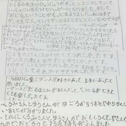 最初に、校長先生から「9月にミュージカルにご招待いただいていること、そのミュージカルの振付・出演をされている方からダンスを教われること」が発表され、子ども達は大喜びでした!