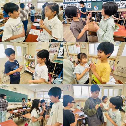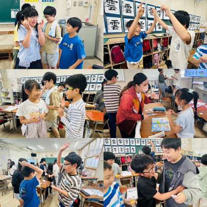 子ども達は積極的に友達に声をかけ、自分のカードと合う友達が見つかると、笑顔でハイタッチをしたり、飛び跳ねて喜んだりしながら楽しそうに活動していました。