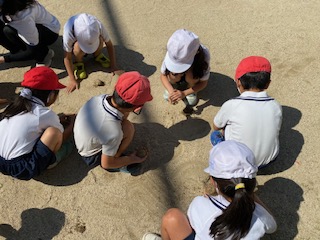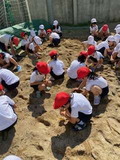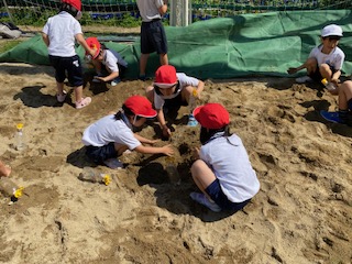 砂遊びをしました。泥だんごや、お山を作ってトンネルを掘りました。