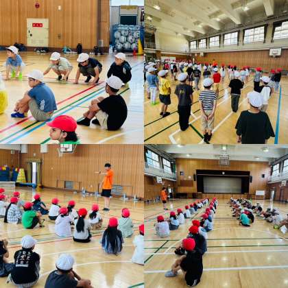 本日は講堂で、プールサイドでの並び方やバディの組み方、ハンドサインの確認を行いました。安全に気をつけて、みんなで楽しく取り組んでいきます。