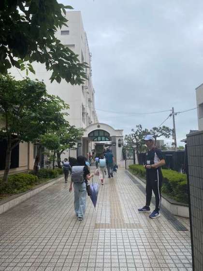 登校時間開始とほぼ同時に雨が降ってきて、少し濡れた子もいました。