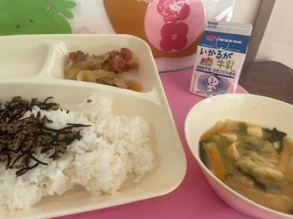鶏肉の甘辛焼き みそ汁 魚ひじきそぼろ