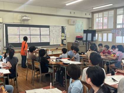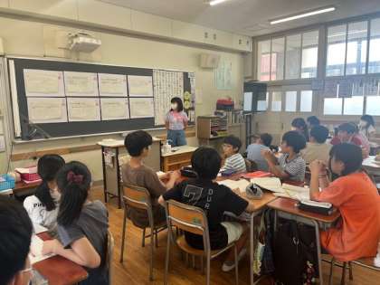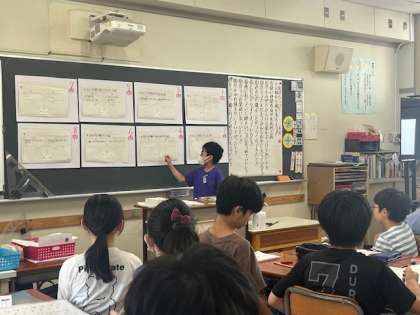 自分の考えを書いた後、班で話し合い、全体の場で発表し合いました。