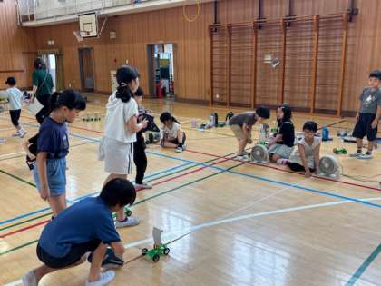 風の強さをかえると、物を動かす働きはどのように変わるのか実験しました。