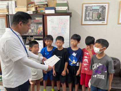 今日の児童朝会では、はじめに、先週行われたドッジボール大会で優勝したチームに表彰状が贈られました。