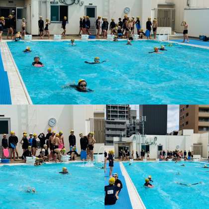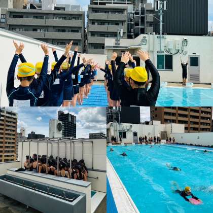 毎回お天気に恵まれている、4年生のプール水泳。今日は、いつも以上にたくさんの距離を泳ぎました!