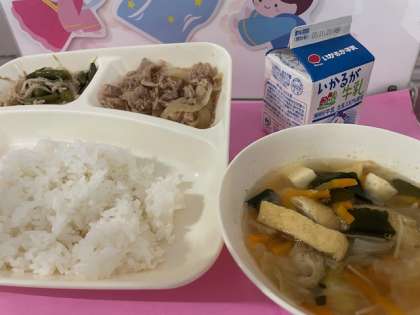 豚肉のしょうが焼き 五目汁 ツナと野菜のいためもの