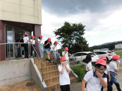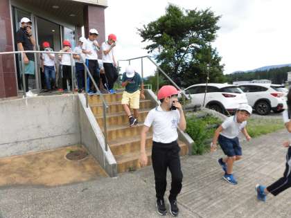 宿舎の方からのオリエンテーションの後、本宿舎恒例の『厳しい』避難訓練に臨みました。