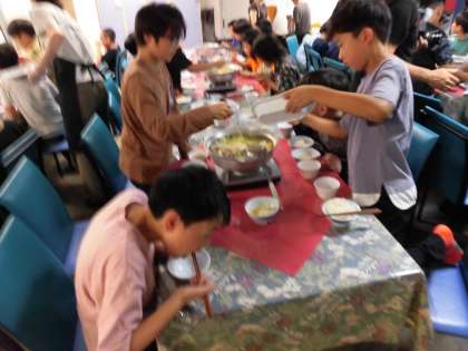 今日のメニューは豚鍋。エアコンの効いた部屋で温かい鍋。汗をかきながら美味しくいただきます。