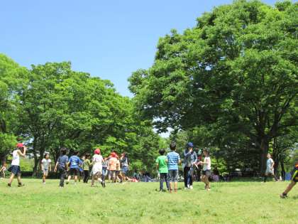 お弁当を食べた後、もみじ川芝生広場でおにごっこやドッジボールをして遊びました。