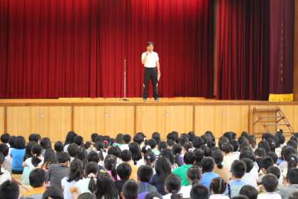 児童朝会で、いじめはどうしてなくならないのか、いじめとはどういうことなのかを具体的に校長先生から話を聞くことができました。