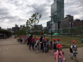 1・2年生あわせて150名ほどの移動のため、子どもたちに公共交通機関でのマナーや安全について約束をしていましたが、しっかりと約束を守って安全に行動することができました。