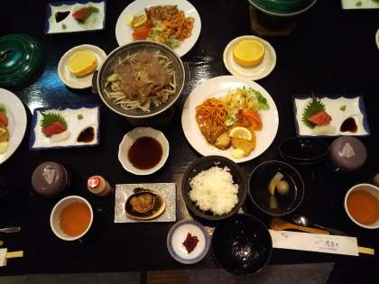 待ちに待った夕食。豪華な食事に、どれから食べようか迷っている様子が見られました。