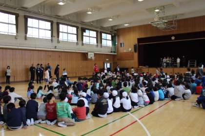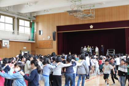 集会委員会の進行によって、全学年(なかよし班)の児童が「じゃんけん列車(貨物列車)」で楽しみました。なかよし班でのつながりを深めることができました。