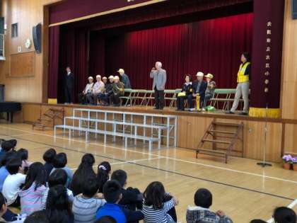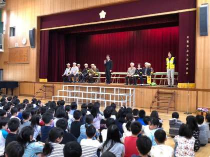 子どもたちが安全に登下校できるよう、毎日見守ってくださっている地域の方々や区役所の方を全校朝会にお迎えして、子どもたちに紹介しました。今年度もどうぞよろしくお願いいたします!