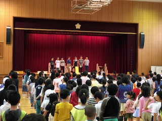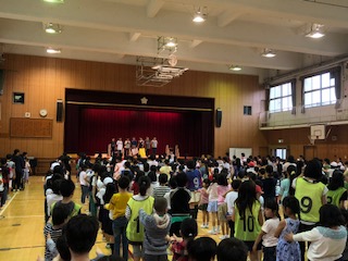 朝の児童集会が全学年で行われました。たてわり班(なかよし班)で、集会委員会によるクイズを楽しみました。これからもたてわり班(なかよし班)の活動はたくさんありますので、みんなで協力して、よりより活動にしていきましょう。