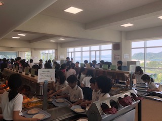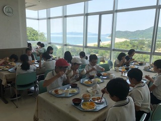 午前は玉ねぎ抜き体験と海岸遊びを満喫しました!昼食の様子です。午後からは「砂の造形」の活動です。