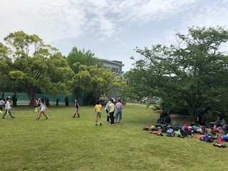 ストーンペインティングの後は、昼食までの残りの時間、施設内の芝生で遊び(サッカー、キャッチボール、フリスビー、鬼ごっこ等)ました。みんな元気いっぱいです。後はお弁当を食べて、帰りのバスに乗ります。怪我なく元気に帰ります!待っていてください。