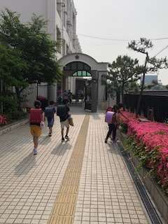 朝の登校の様子です。元気に笑顔で「おはようございます!」と挨拶できています。