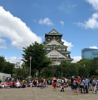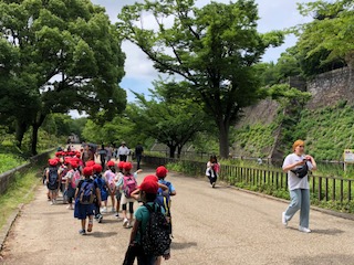 大阪城の近くで見学した後は、お堀の周りを歩いて、西ノ丸庭園にむかいます。