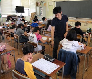 →漢字テストに取り組んでいました。一画一画確実に書いて、一生懸命に解いていました。