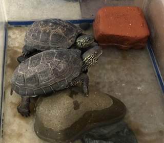 →4階で6年生がお世話をしてくれているカメです。食欲旺盛でいつも元気です!