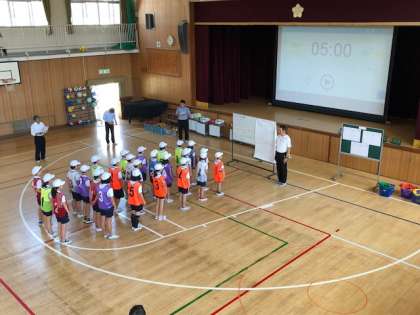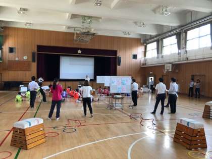 5年生は体育科で、体つくり運動をすすめています。今日は教員の研修も兼ねて、授業が公開されました。大阪市内から参加したたくさんの教員に見守られるなか学習をすすめました。