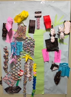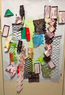 北階段1階に、イラスト工作クラブの作品の「七夕飾り」が掲示されています。