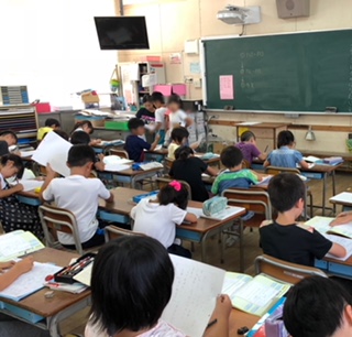 →「一学期にがんばったこと」の作文を書いていました。一学期のことを楽しく思い出しながら活動をしていました