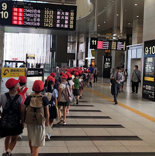 →電車の中から様子を確認して、気づいたことをかきしるしていました。