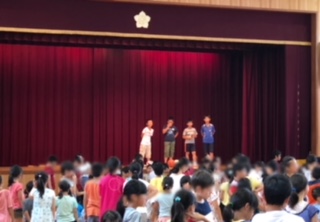 一学期最後の集会でした。楽しくゲームで盛り上がりました。