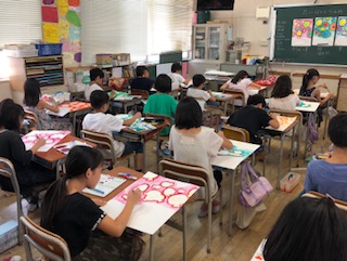 →「花いっぱいになあれ」クレパスや絵の具を使っての作品を仕上げていました。