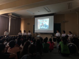 修学旅行や一泊移住等の取り組みや日常の学校の様子について、映像などを活用してわかりやすく紹介してくださいました。質問にも丁寧に答えてもらい、6年生の児童はとても喜んでいました。