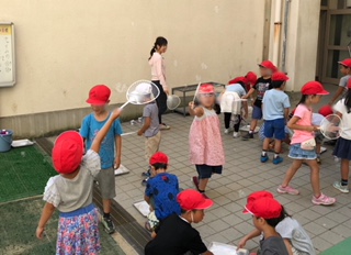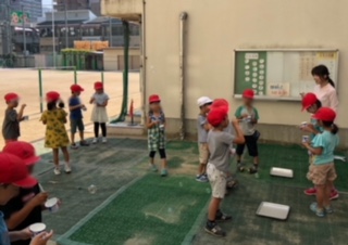 →シャボン玉遊びをしていました。大きなシャボン玉ができて、大喜びでした。