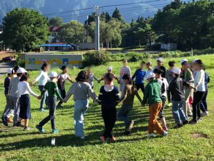お風呂に入った後、キャンプファイヤーのスタンツの練習をしました。