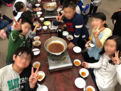 子ども達のお腹が満足するように宿の方が、多目に出してくださっているのですが、この班は見事に完食しました!