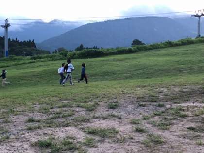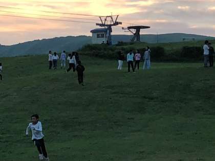 ナイトハイクの暗さになるまで、宿舎の目の前の高原で自由に遊んでいます!