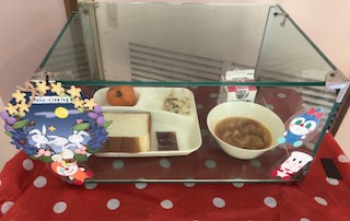 豆乳マカロニグラタン、トマトスープ、冷凍みかん、パン、牛乳