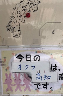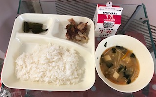 豚肉の甘辛焼き、みそ汁、オクラのおかかいため、米飯、牛乳