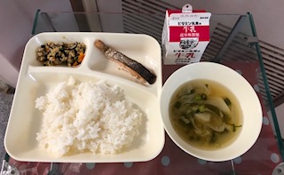 さけのしょうゆ風味焼き、五目汁、高野どうふのいり煮、米飯、牛乳