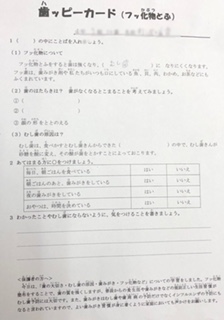 歯の働きや虫歯の原因、虫歯にならないためにはどうすれば良いかを教えていただきました。