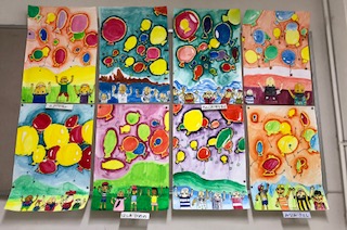 →図画工作の絵画作品が飾られていました。
